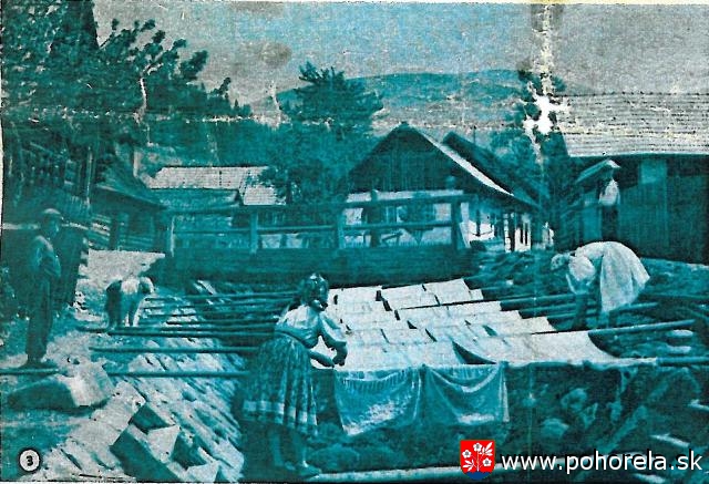Ľudia v chološniach a oplieckách- Pod Kráľovou hoľou, z východnej strany, v širokej doline, pánu bohu za chrbtom leží vari tisícročná obec Pohorelá. Kronika hovorí, že jestvovala už v jedenástom storočí za panovania Ondreja I. Ale jej občanov vyhubil neskoršie pravdepodobne mor. Až v roku 1520 sa v nej osídlili obyvatelia poľského pôvodu, ktorí sem prišli cez Kráľovú hoľu. Ich potomci to sú terajší Pohorelci, pravda zmiešaní so slovenskou krvou. No i dnes tu badať znaky staropoľských nárečí, ba i na starých opleckách a hantuchoch spozoruješ vplyv starého poľského ľudového umenia. Obec mala niekoľko mien v období maďarizácie, ale Pohorelci ostali vždy Pohorelcami. Títo ľudia sa už dávno začali živiť pálením uhlia z drea a odvozom železnej rudy, ktorú vozili do Dobšinej, Maše, Hronca, Podbrezovej i Polhory. S drevom a doskami chodili až do Miškovca, Jágra a Hatvanu, kde vozili i železo. Keď na Horehroní postavil feudál Coburg kovospracujúce závody s vodnými hámrami a martinskými pecami, Pohorelci našli obživu bližšie. No tieto priemyselné podniky začali koncom minulého storočia zanikať. Posledné z nich zanikli roku 1933 v dôsledku kapitalistickej hospodárskej krízy. Poklesla i ťažba dreva. Pracovné príležitosti Horehroncov sa znížili. SKalnaté grapy nijako nestačili vyživiť mnohodetné rodiny. Pohorelci - a Horehronci vôbec - odchádzali za more, kde robili v najťažších prácach. Jeden z nich, Karol Virus, ktorý sa pred štyrmi rokmi vrátil, pracoval skoro tri desaťročia na rozličných miestach a nakoniec v prístave Fort William, v Kanade. Spomína: - Bolo to roku 1924. Prešiel som pešo celé Horehronia, ale prácu som nenašiel. Čo sa dalo robiť? Musel som nechať ženu, deti a dal som sa vyviesť za more, aby som aspoň toľko zarobil, čo by som rodine drevenicu mohol postaviť. Lebo keď sme sa s mojou ženou brali, nemali sme ani strechu nad hlavou. V kanade som pracoval v komunistickej strane, organizoval som štrajky. Každú chvíľu ma vyhodili z práce alebo ma zatkli. Celých 28 rokov som tam žil iba zo dňa na deň. Tvrdo žili Horehronci. Dnes niekoľkí pracujú v priemyselných závodoch v Pohorelskej Maši, Závadke alebo z hôr privážajú na píly drevo. Mnohí pracujú v pohraničí i v baniach, roztratení po celej republike. Ale nejeden Pohorelec sa ešte doma plahočí na drobných roličkách. Zopár ich už pracuje v menšinovom roľníckom družstve. Lepší život si preráža cestu, i keď ešte stále pomaly, aj do tejto drevenej dediny, kde žijú pracovití, umní ľudia v chološniach, skurianikoch i vyšívaných opleckách. - Dušan Haruštiak -
