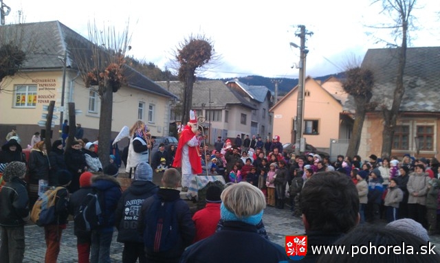 V utorok 5. decembra podvečer nedočkavými i zvedavými deťmi zaplnené pohorelské námestie čakalo na príchod sv. Mikuláša. Namiesto neho sa však objavil vtieravý komerčný Santa Claus. Pokúšal sa všetkých presvedčiť, že on je ten pravý. Našťastie o chvíľu prišiel na koči na námestie aj Mikuláš so svojim sprievodom. No Santa Claus sa len tak ľahko nechcel zdať a odísť. Zavolali si preto na pomoc detektíva Monka a i s jeho pomocou sa deťom podarilo vypátrať rozdiely medzi sv.Mikulášom a Santa Clausom. Samotné deti rozhodli, že sv.Mikuláš je ten pravý a že on má ostať. Deti z Detského folklórneho súboru Mladosť pozdravili Mikuláša pásmom ľudových piesni. Potom Mikuláš spolu s anjelom i čertom všetky dobré deti za básničku či pesničku odmenili sladkosťami. A na záver ešte rozžali na námestí vianočný stromček.