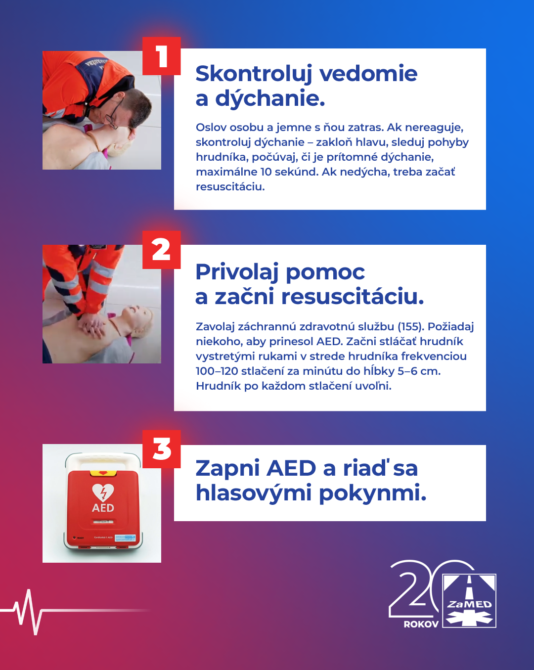 “Viete, čo robiť v prípade náhleho zastavenia srdca? Naučte sa, ako použiť AED – možno raz zachránite život.”
