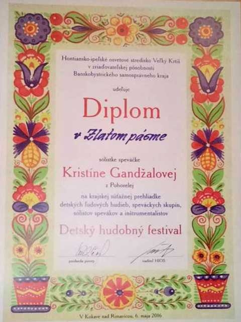 V kultúrnom dome v Kokave nad Rimavicou sa 6. mája 2016 uskutočnila krajská súťažná prehliadka detských ľudových hudieb, speváckych skupín, sólistov spevákov a inštrumentalistov - Detský hudobný festival. Víťazstvom na Horehronskej valaška do nej postúpila aj Kristínka Gandžalová. A bola úspešná aj na tejto súťaži, kde získala Zlaté pásmo.