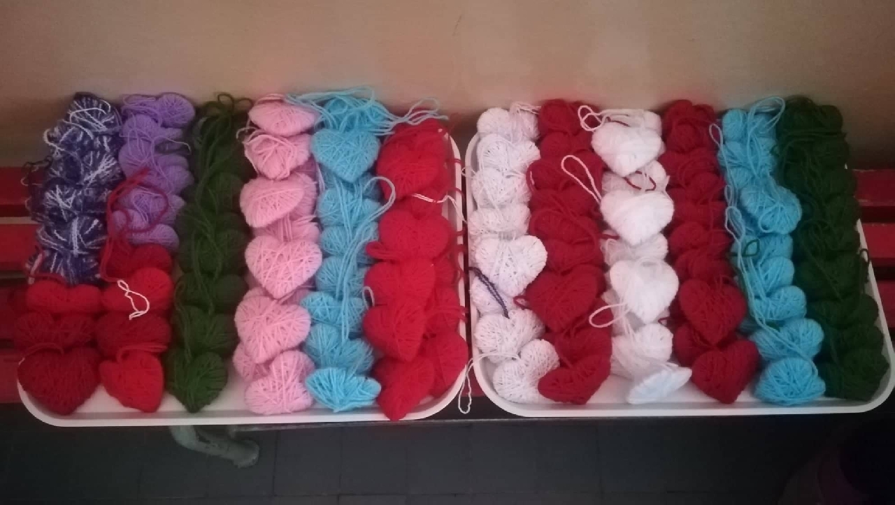 okolí. Peknými srdiečkami upletených z vlny prispeli aj žiačky z krúžku Ručné práce.
